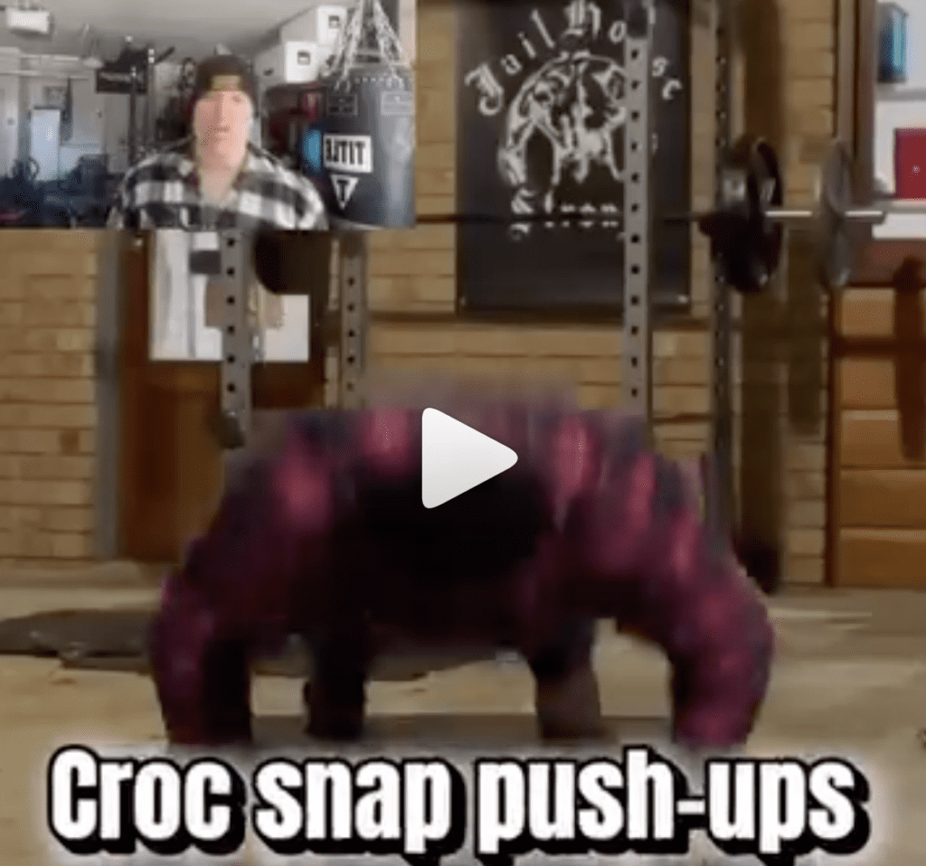 We start with explosive push-ups. Clapping push-ups, croc snaps, depth jump push-ups, or standard explosive reps done with violent intent. Two to five reps per set. Three to five sets. Full recovery. These are not conditioning drills. Each rep should be crisp and aggressive. You are rehearsing speed and forcing rapid motor unit recruitment before your first heavy bench press set ever starts.